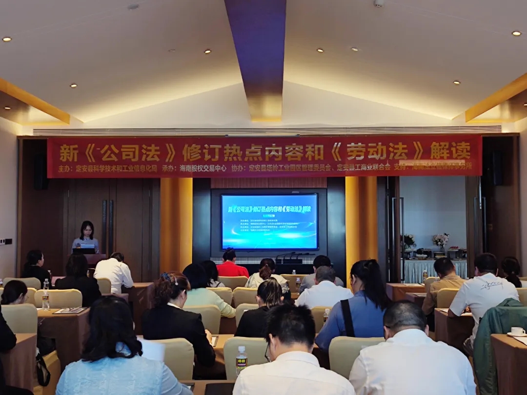 11月28日下午,定安舉辦“新《公司法》修訂熱點(diǎn)內(nèi)容和《勞動(dòng)法》解讀”專題講座,講座邀請海南法立信律師事務(wù)所律師分別進(jìn)行了的相關(guān)主題分享。50多位來自定安縣中小企業(yè)代表參加活動(dòng)。隨著新《公司法》和《勞動(dòng)法》...
