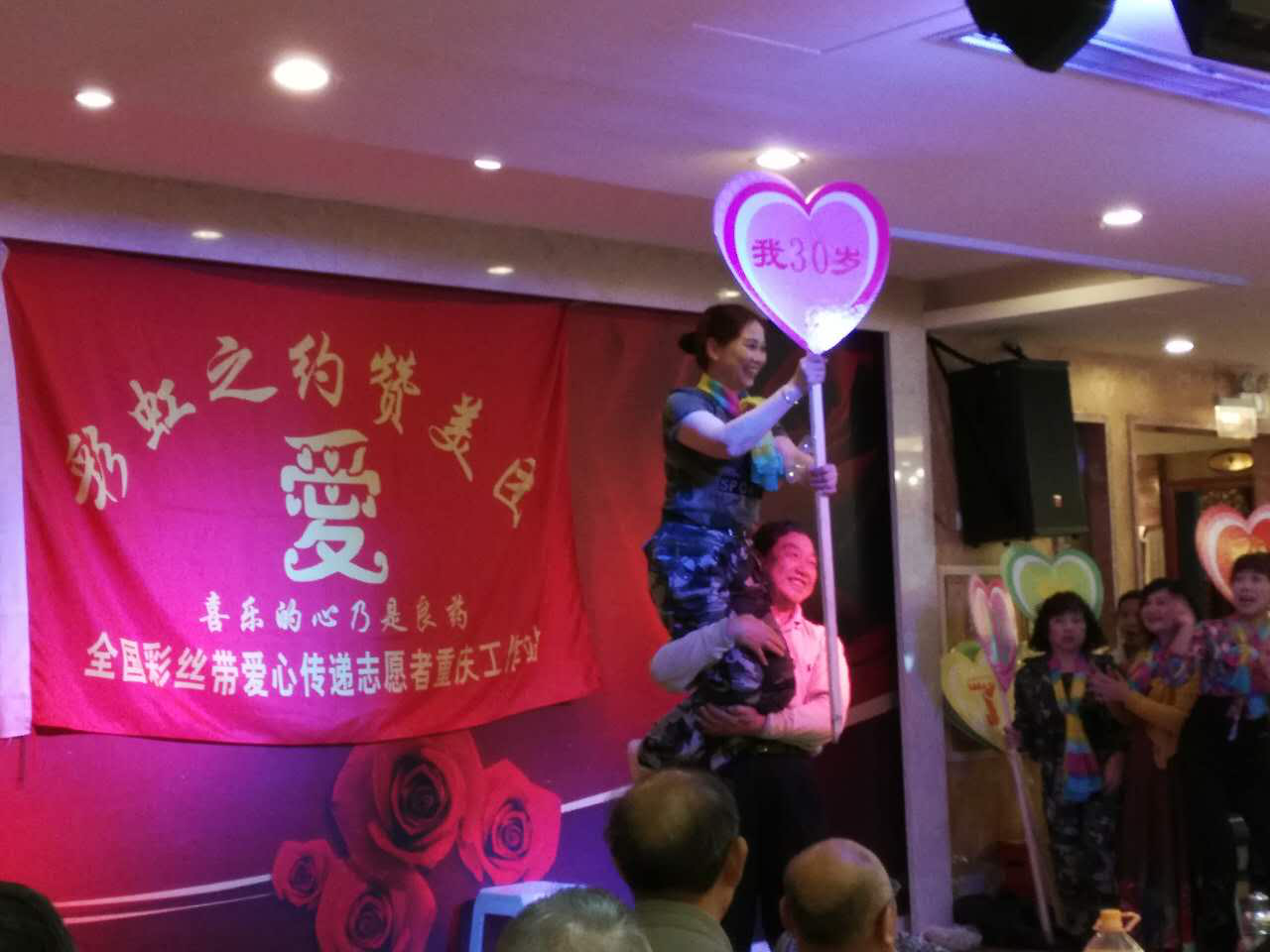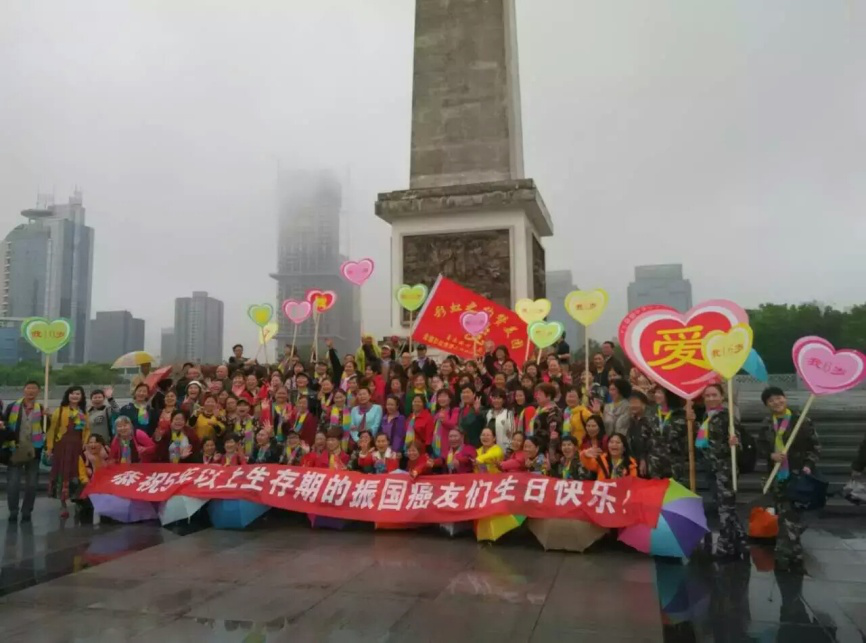 2016年4月10日,全國彩絲帶愛心傳遞重慶工作站的志愿者們在兩江幸福廣場為重慶病友(5年以上癌齡)舉辦了一場特別的集體生日,百名癌癥患者齊唱《生日歌》,大呼“我們活了!”