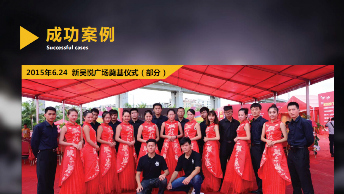 | 企業說明: | 博峰文化傳播有限公司(下文統稱為博峰)是一家致力于提供文化傳播類服務的專業機構,我們承接慶典活動、商務會議、高端晚宴、文藝匯演等,能為公益、商業、娛樂等各類性質的文化傳播活動提供一站式服務。博峰善于整合已有的資源,創立至今已有自己較為完善的團隊,我們提供全程的策劃執行、優質的演繹資源和高端的舞美設備;我們不斷進步,致力于發展成為管理體制健全、富有創造力、客戶信賴、享譽業界的文化傳播服務公司。 博峰以??谑凶鳛楣窘洜I服務的重點,公司經營服務范圍向三亞市輻射擴大。博峰作為文化傳播公司,主要為公司、團體、政府,個人提供各類傳播活動。公司經營范圍大致分為5類,分別為演出經紀類、品牌推廣類、展覽展示類、慶典類、模特禮儀類,博峰主要以品牌推廣類、展覽展示類、慶典類3項創意技術類項活動為主。