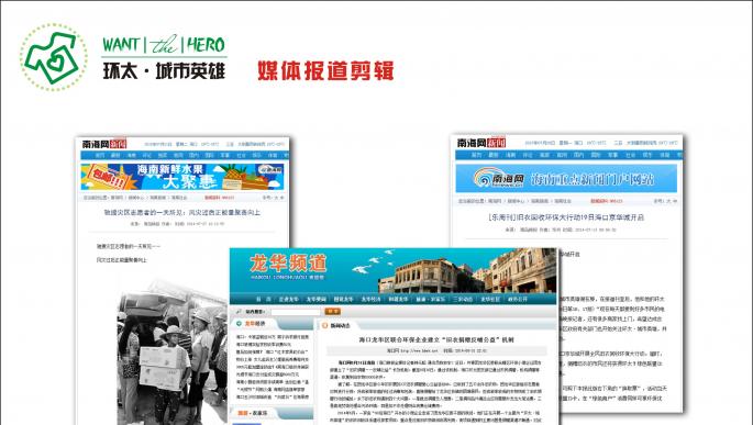 1、提升合作企業(yè)品牌形象,增加合作方內(nèi)部良性互動,增強(qiáng)企業(yè)內(nèi)部員工凝聚力,有利于企業(yè)文化建設(shè)。 2、WANT環(huán)太城市英雄微信公眾號:近7000粉絲,每期推送閱讀量2000至5000。 3、城市英雄·環(huán)小太:個人微信服務(wù)號,近2000用戶。 4、每周小區(qū)活動:每周會選擇四到六個小區(qū)做線下活動。 5、上門舊衣回收服務(wù),每周200家左右,下周增加一組回收人員后業(yè)務(wù)量大概400至500一周。 6、50個綠色聯(lián)盟商家會員。 |