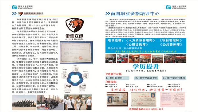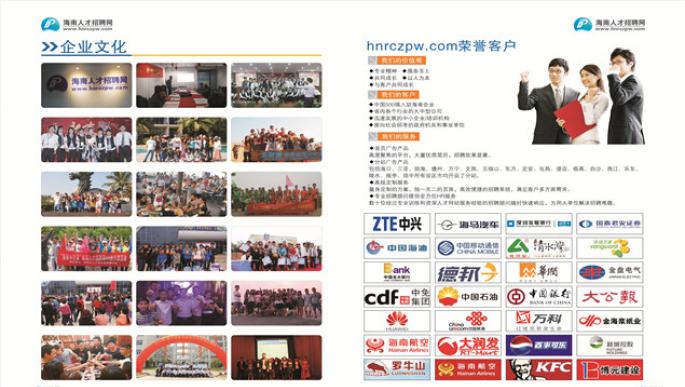 南國人力集團旗下公司:海南南國人力資源開發(fā)有限公司、海口智杰人力資源開發(fā)有限公司、海南銳才人力資源有限公司、海南英才人力資源有限公司、三亞英才人力資源開發(fā)有限公司、海南聚才網絡科技有限公司、海南雷霆安保服務有限公司、海南五八到家信息服務有限公司、海口南國宏章教育咨詢有限公司、海南南國人力資源開發(fā)有限公司儋州分公司、海南南國人力資源開發(fā)有限公司瓊海分公司 南國人力旗下業(yè)務:海南人才招聘網、海南招聘快訊、南國人才市場、勞務派遣/外包、人事代理、南國人力培訓中心、海南獵頭網、58同城海南總代理、58到家海南總代理、雷霆安保服務。 |