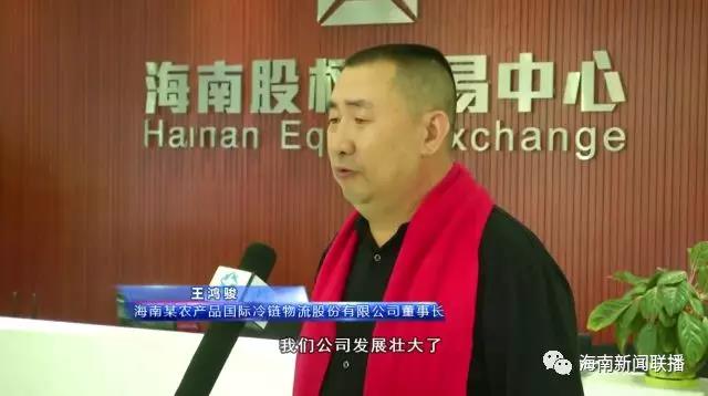 海南某農產品國際冷鏈物流股份有限公司 董事長 王鴻駿:通過這次掛牌 我們公司發展壯大了 企業的推動力和資源整合能力加強了。