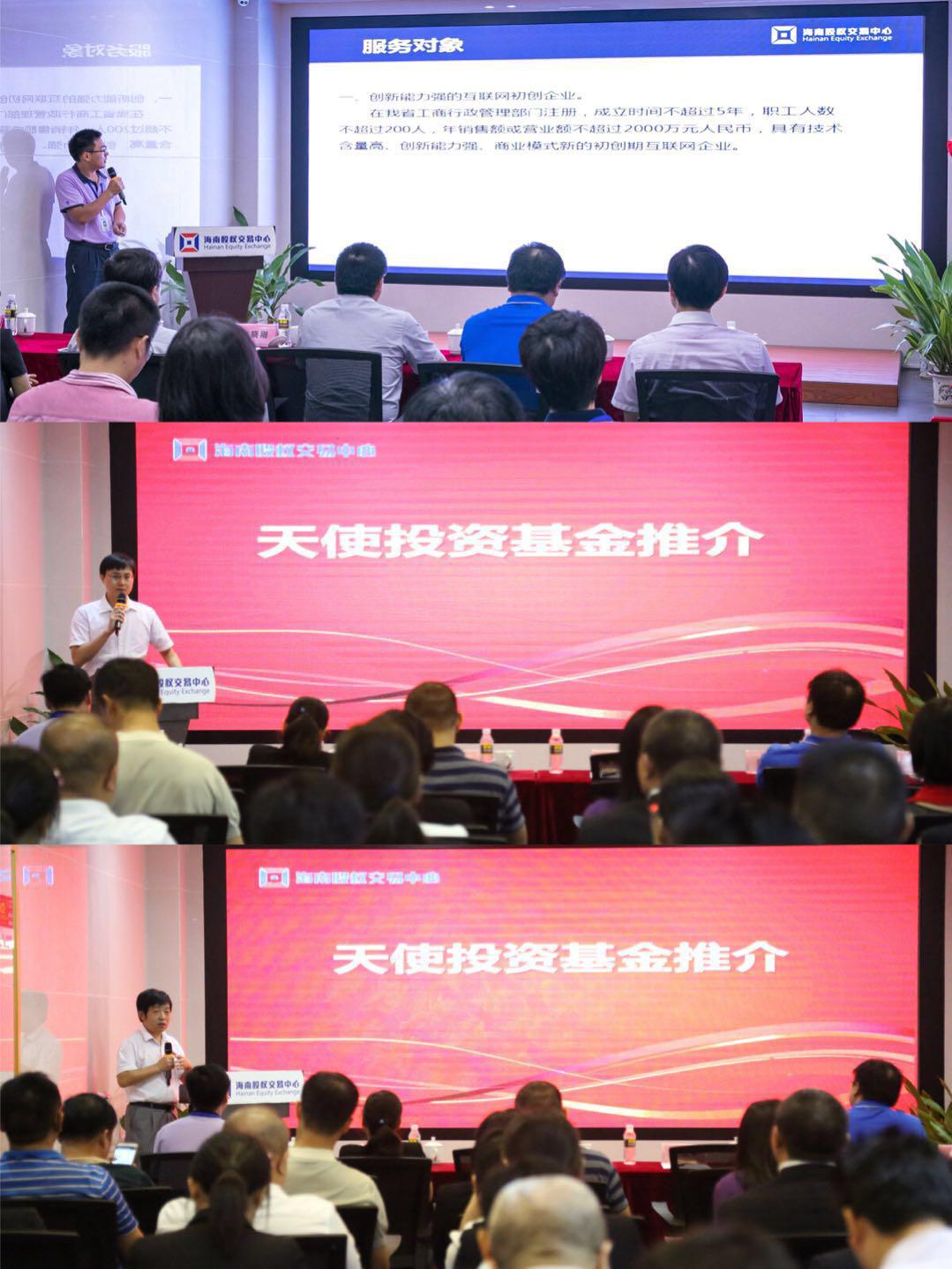 現場,海控資本及聯合資產對天使投資、天使投資基金等方面內容進行了介紹,并表示,未來在進行天使投資過程中,將會優先考慮海南股交中心“天使板”的掛牌企業,同時,希望企業能夠通過“天使板”的服務,規范發展。