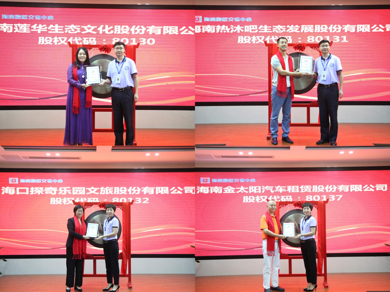 隨著一陣鑼聲響起,4家企業正式宣告掛牌海南股權交易中心。