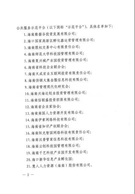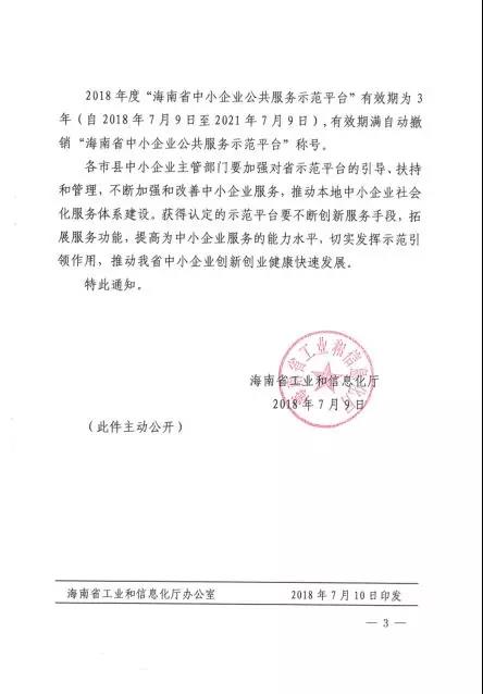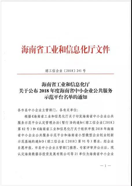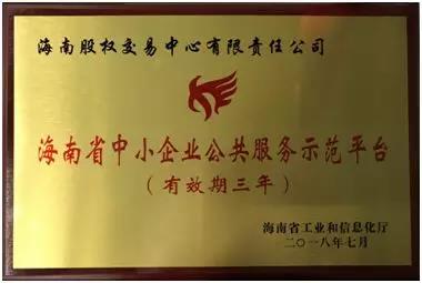 近日,省工信廳正式印發通知,公布2018年度海南省中小企業公共服務示范平臺名單,包括海南股權交易中心在內的21家單位獲得認可。