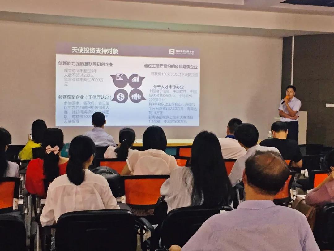 股交中心機構(gòu)合作部負(fù)責(zé)人蔣文斌為在場企業(yè)介紹了區(qū)域性股權(quán)交易市場的現(xiàn)狀及股交中心的發(fā)展?fàn)顩r,并就“股交中心如何助力海南高新技術(shù)及科技型企業(yè)發(fā)展”這一核心問題進(jìn)行了詳細(xì)的說明和講解,同時,向在場的企業(yè)介紹了股交中心于6月20日正式設(shè)立的海南首個專注于互聯(lián)網(wǎng)初創(chuàng)企業(yè)天使投資的服務(wù)板塊“天使板”及天使投資相關(guān)情況,鼓勵和歡迎高新技術(shù)及科技型企業(yè)掛牌天使板,通過天使板實現(xiàn)企業(yè)融資和發(fā)展的目標(biāo)。
