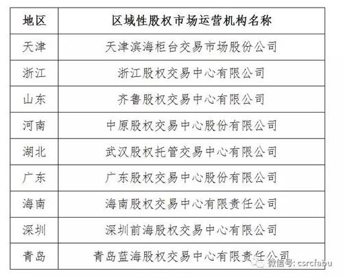 根據《國務院辦公廳關于規范發展區域性股權市場的通知》(國辦發〔2017〕11號)、《區域性股權市場監督管理試行辦法》(證監會令第132號)有關規定,區域性股權市場運營機構名單由省級人民政府實施管理并予以公告,同時向證監會備案。自2018年4月27日公示《全國區域性股權市場運營機構備案名單(第一批)》以來,9個地區按規定要求向我會備案區域性股權市場運營機構情況。具體名單如下: