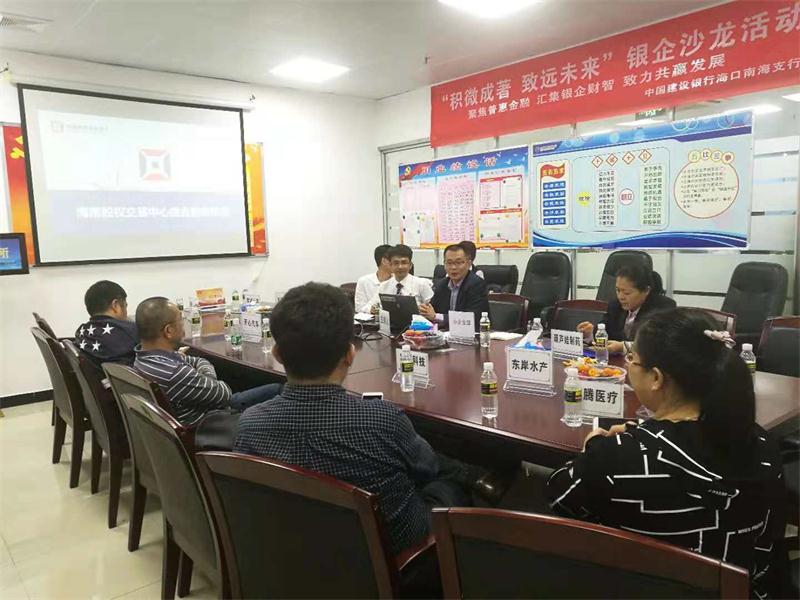 為貫徹黨中央支持民營企業發展方針,幫助小微企業解決融資難、融資貴、融資慢等問題,加速推進普惠金融戰略,海南股權交易中心(簡稱“海南股交”)與中國建設銀行??谀虾V校ê喎Q“建行南海支行”)于11月27日下午舉辦小微企業“銀企沙龍”活動,應邀的18家企業代表出席了此次活動。