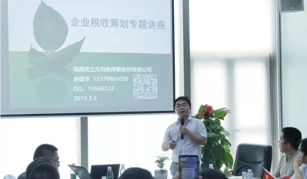 培訓會上,中國注冊稅務師、海南省地稅土地增值稅清算專家庫專家吳雄華理論聯系實際,詳細介紹了稅收籌劃的重要性和存在基礎、稅收籌劃的基本方法和案例及本地稅收優惠政策,深入淺出地解讀了2018-2019重要稅收政策,并為現場企業代表答疑釋惑,受到大家一直好評。