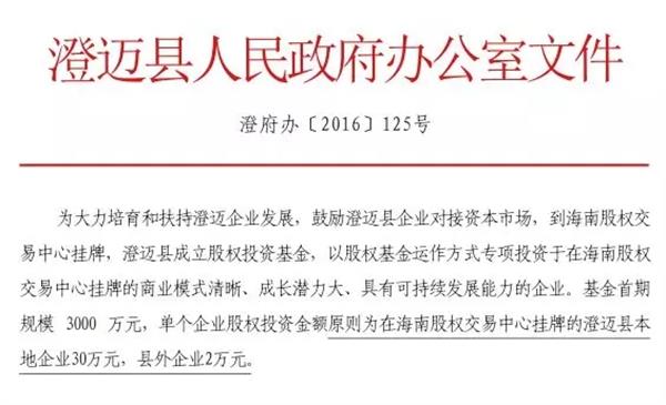 在國家采取精準有效措施大力支持中小微企業發展,解決中小微企業融資難、融資貴難題的大背景下。從2015年開始,海南省各級政府密集出臺鼓勵企業掛牌區域性股權交易市場(即四板市場)的政策。同時,在股份改制、掛牌、融資等方面,給予掛牌企業財政獎勵,以實際行動助力中小微企業對接資本市場,做大做強。