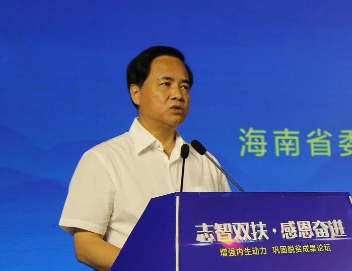 為貫徹落實4月16日習近平總書記在重慶主持召開解決“兩不愁三保障”突出問題座談會上,“要加強扶貧同扶志扶智相結合,讓脫貧具有可持續的內生動力”的重要論述,近日,由國務院扶貧開發領導小組辦公室、海南省人民政府指導,全國扶貧宣傳教育中心、海南省扶貧辦主辦,《中國扶貧》雜志社承辦的“志智雙扶·感恩奮進—增強內生動力鞏固脫貧成果”論壇在海南省海口市舉辦。論壇分為開幕式、主旨發言、圓桌對話和扶貧扶志故事匯4個環節,開幕式由海南省委副書記李軍主持,國務院扶貧辦黨組書記、主任劉永富出席并發表講話,海南省委書記、省人大常委會主任劉賜貴出席并作主旨演講。