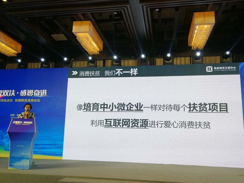 論壇活動當天,海南股權交易中心受邀出席活動,在“扶貧扶志故事會”環節,總經理班淼琦向現場領導與嘉賓講述了海南股交的扶貧故事。