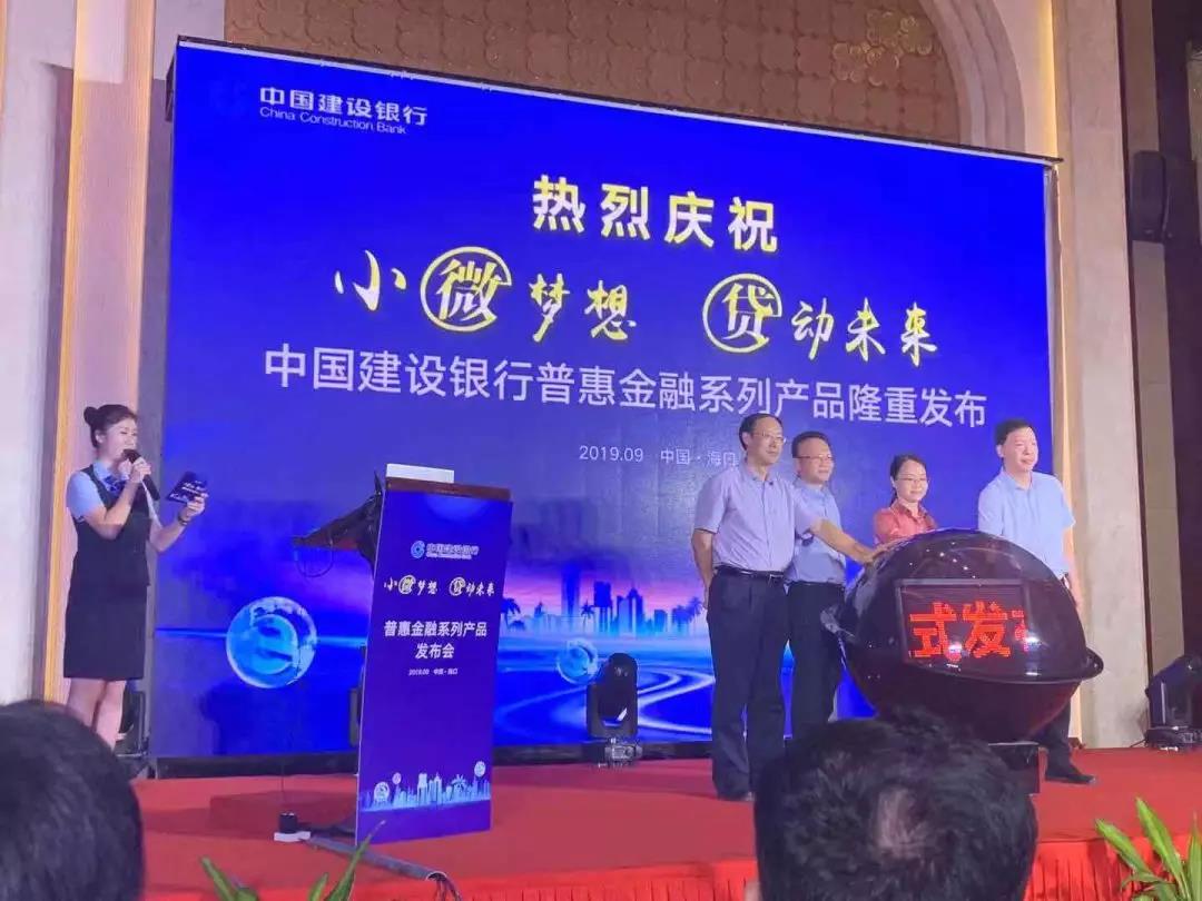 為打造建設銀行普惠金融系列產品品牌體系,快速做大做強重點產品業務規模,鞏固普惠金融市場領航優勢,9月27日下午,中國建設銀行海南省分行組織舉辦中國建設銀行普惠金融系列產品發布會,中國建設銀行海南省分行行長張中科、副行長呂嘉、中國人民銀行海口支行副調研員李函晟、海南股權交易中心執行總經理程棟才、海南中小企業服務中心常務副主任李勇燁以及3家商會代表、50余家企業代表參加此次發布會活動。