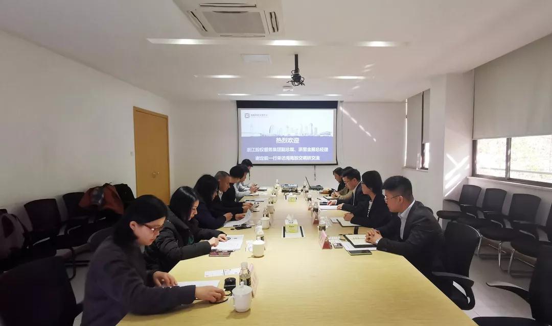 12月9日上午,浙江股權服務集團副總裁、浙里金服總經理謝定能一行到訪海南股交進行調研交流。公司執行總經理程棟才、總經理助理王慧敏、卜麗麗、吳杰參加座談交流。
