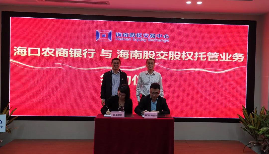 在現(xiàn)場(chǎng)領(lǐng)導(dǎo)、嘉賓的見證下,海南股交與海口農(nóng)商銀行正式簽署銀行股權(quán)登記托管協(xié)議,海口農(nóng)商行成為今年7月中國(guó)銀保監(jiān)會(huì)發(fā)布《商業(yè)銀行股權(quán)托管辦法》以來,率先在海南區(qū)域性股權(quán)交易市場(chǎng)運(yùn)營(yíng)機(jī)構(gòu)成功托管股權(quán)的非上市商業(yè)銀行,這對(duì)我省商業(yè)銀行股權(quán)托管工作極具示范意義。