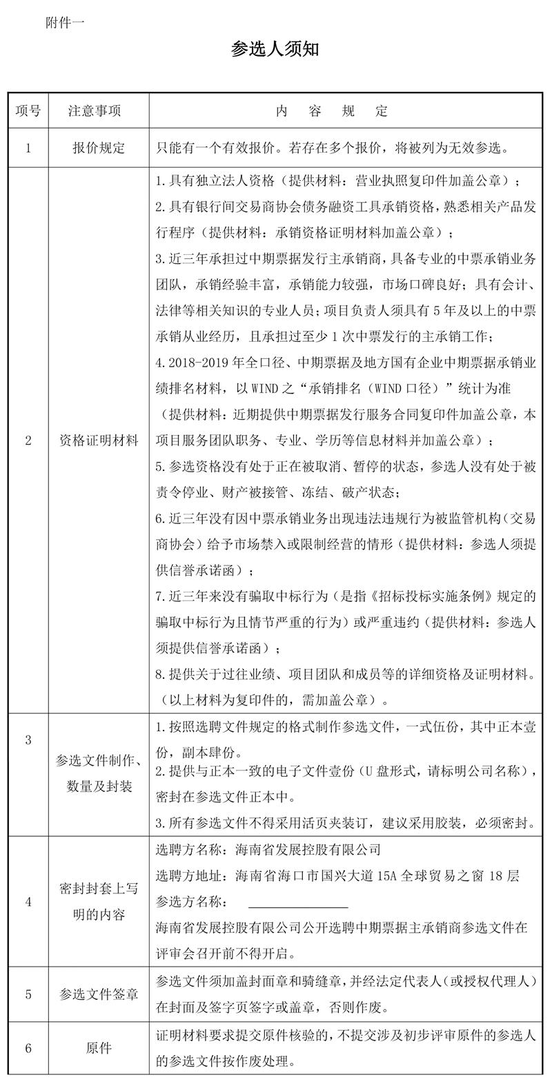 根據相關法律法規,受委托,海南股權交易中心有限責任公司公開選聘發行中期票據主承銷商,為中期票據發行提供相關服務。歡迎符合條件的商業銀行,證券公司遵照本公告的有關規定報名參加,現將有關事項公告如下:
