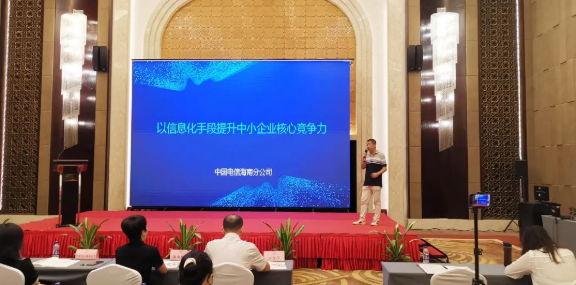 會上,中國電信海南公司、中興通信、海南省通信產業服務有限公司、深圳盛陽科技股份有限公司等相關負責人分別就可為中小企業提供的信息化產品進行了分享。現場通過視頻以及產品演示的方式,向參會代表介紹了現階段國家鼓勵中小企業信息化轉型的大方向以及5G時代帶來的現代技術發展浪潮。