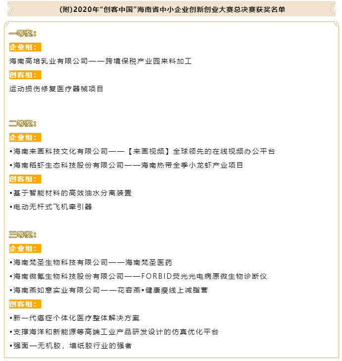 作為全國最重要的雙創賽事之一,海南省工信廳已連續4年主辦“創客中國”區域賽,本次大賽旨在進一步激發我省“雙創”活力,聚集“雙創”資源,發掘和扶持一批“雙創”優秀項目和優秀企業、團隊。大賽在我省范圍內營造了濃厚的創新創業氛圍,對優化我省中小企業發展環境,推動中小企業高質量發展創造了良好條件,有利于加快推動我省中小企業轉型升級,為海南自貿港高質量發展注入源頭活水。