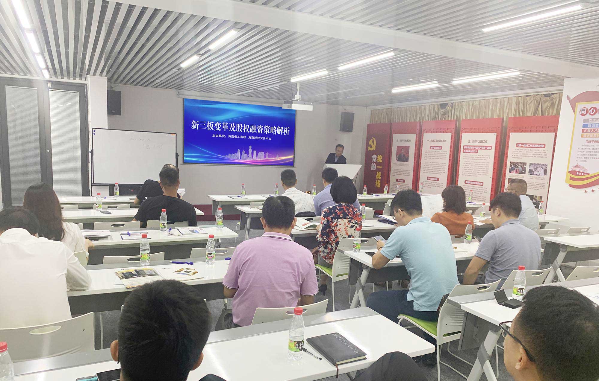 為促進(jìn)我省中小企業(yè)把握當(dāng)前多層次資本市場(chǎng)特點(diǎn)和國(guó)家政策方向,提升戰(zhàn)略決策能力并做好資本路徑規(guī)劃,由海南省工商聯(lián)、海南股權(quán)交易中心聯(lián)合主辦的“資本市場(chǎng)最新情況解讀---新三板變革及股權(quán)融資策略解析”專題講座在海口濱海國(guó)際電子商務(wù)產(chǎn)業(yè)園如期舉行,海南本地40余家企業(yè)參加本次活動(dòng)。