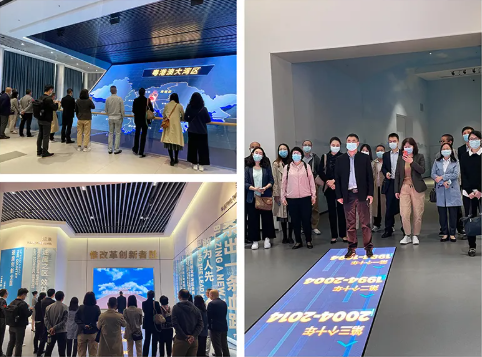 游學(xué)團(tuán)企業(yè)家參觀廣州科學(xué)城展廳,通過(guò)觀看宣傳短片,聽取規(guī)劃沙盤,科技手段模型了解園區(qū)的規(guī)劃發(fā)展以及企業(yè)進(jìn)駐和人才引進(jìn)情況。