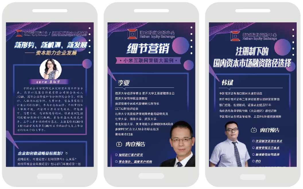 線上課程包含直通海股交、自貿港新觀察、創業與投融資三大板塊,涉及四板基礎知識、自貿港政策解讀、企業家成功案例分享等內容,和線下課形成強勢互補,為企業家學員提供優質高端的課程,幫助學員提升自身綜合素質,破解企業運營難題。