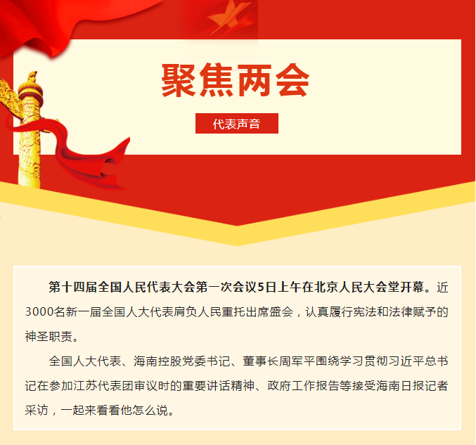 全國(guó)人大代表、海南控股黨委書記、董事長(zhǎng)周軍平圍繞學(xué)習(xí)貫徹習(xí)近平總書記在參加江蘇代表團(tuán)審議時(shí)的重要講話精神、政府工作報(bào)告等接受海南日?qǐng)?bào)記者采訪,一起來(lái)看看他怎么說(shuō)。