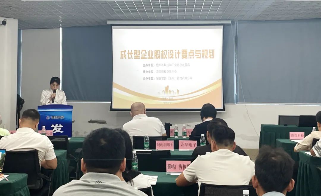 此次培訓是儋州市中小企業專題系列培訓的第十場活動,由儋州市科技和工業信息發展局主辦、海南股交承辦、慧客智創(海南)管理有限公司協辦。