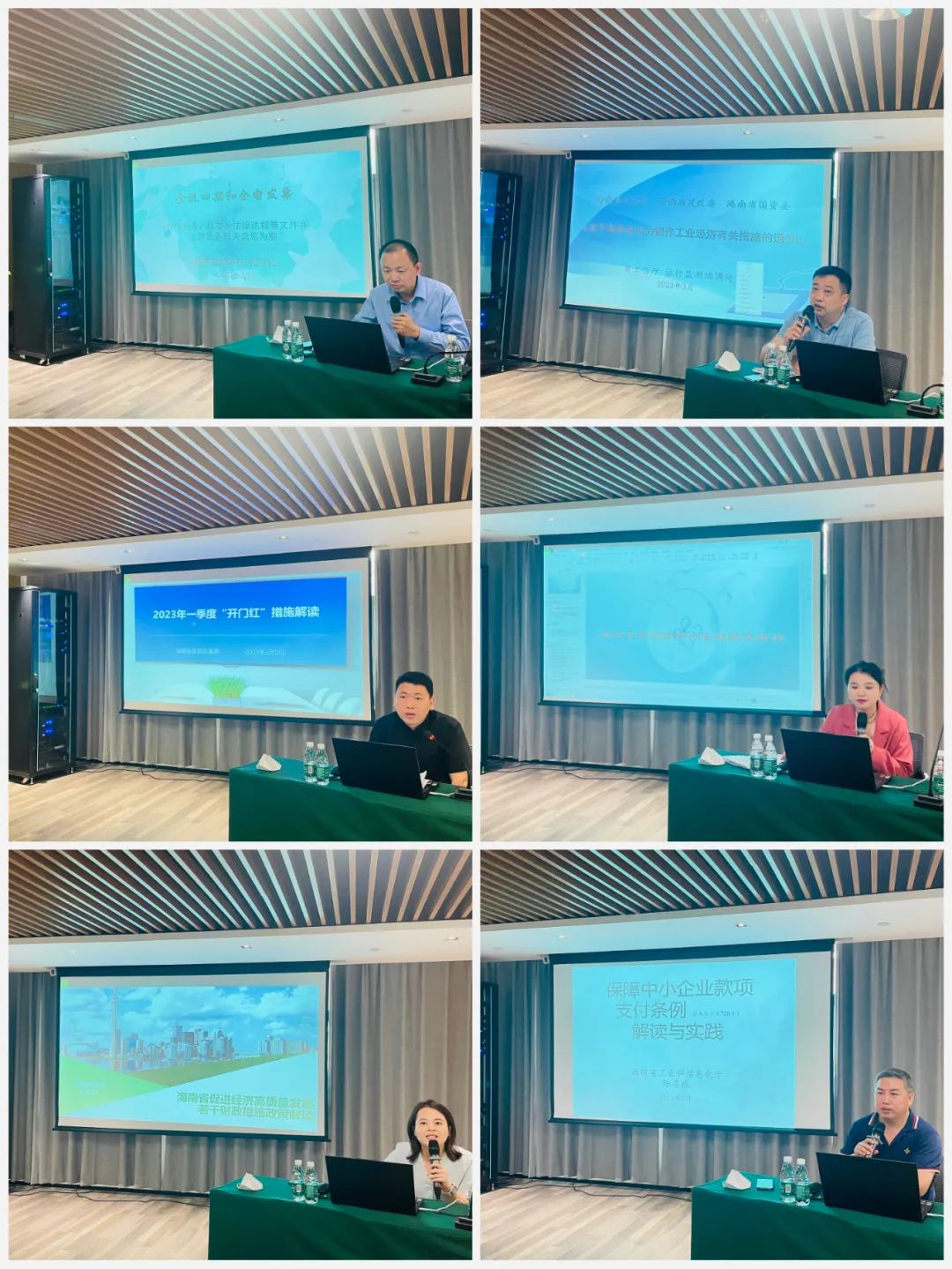 省工信廳、省財政廳、省發改委、省稅務局等政府部門代表分別從保障中小企業款項支付條例、海易兌、專精特新中小企業培育、加力振作工業經濟有關措施、2023年一季度“開門紅”措施、加強政府采購、促進經濟高質量發展若干財政措施、減稅降費等方面進行詳細解讀,同時也與企業代表們開展座談交流,對企業提出的難點訴求進行詳細解答。