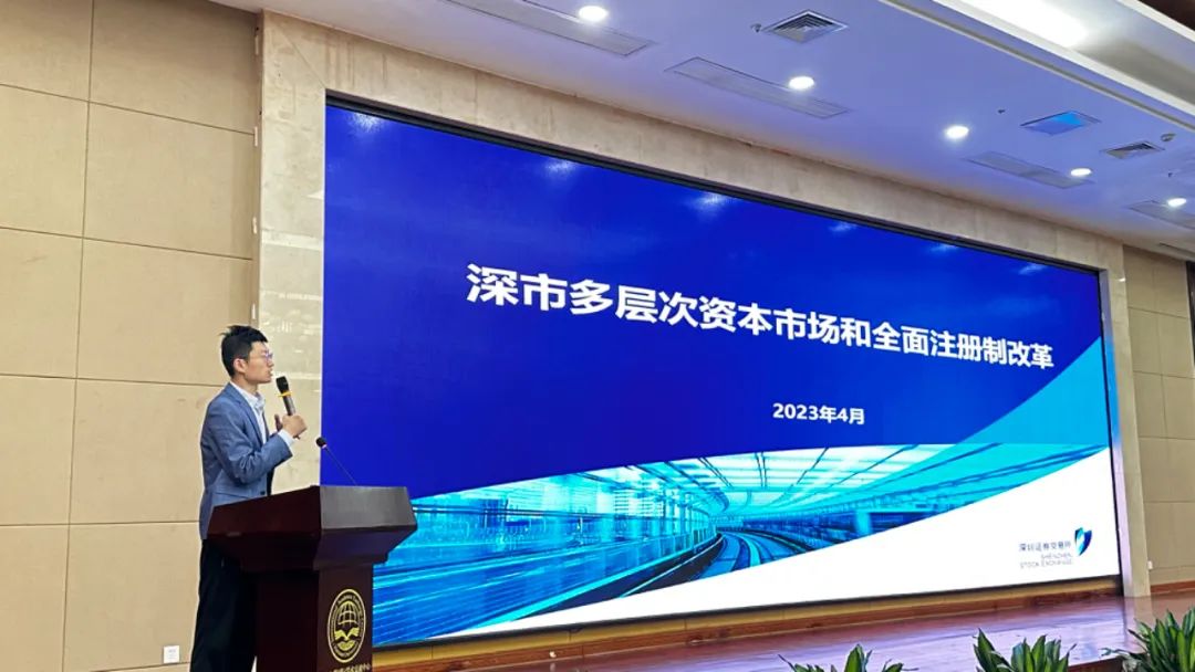 深圳證券交易所發展部華南區副主任 胡月明進行《深市多層次資本市場和全面注冊制改革》主題宣講