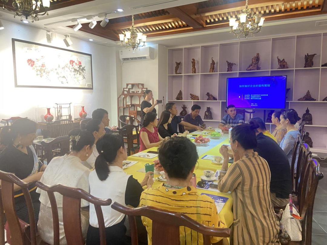 活動在??谑袊⒐诺浼t木家具館二樓會議室舉行,會上由河南中方智庫商務管理研究院資深合伙人宋禮彬分享企業文化和宣傳的重要性,同時分享了經典案例,幫助企業做好宣傳策劃工作,提升企業的競爭力。20余家企業派代表到場參加培訓。