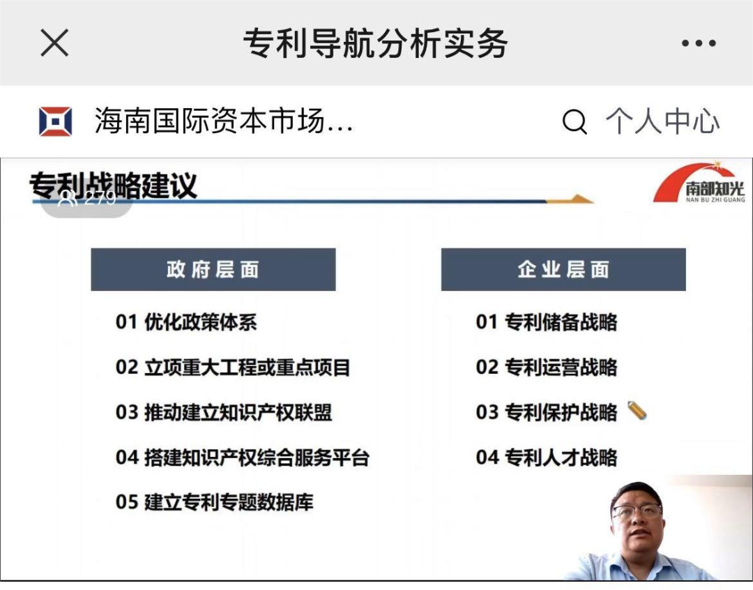培訓邀請南部知光(深圳)技術轉移有限公司總經理丁志新,從專利戰略建議、產業專利導航分析及企業經營活動的專利導航策略分享等方面內容進行分享。合計279家次企業參與培訓。
