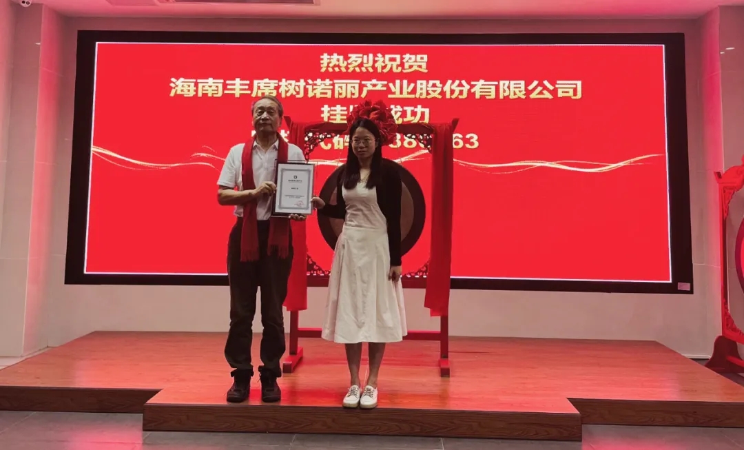 在全場來賓的見證下,澄邁縣金融工作中心主任許夢瑤為豐席樹頒發了掛牌企業牌匾,并一起共同鳴鑼。豐席樹此次成功掛牌海南股交交易板,標志著企業向資本市場邁出了重要一步。開啟了企業通過資本市場實現規范健康發展的嶄新篇章。