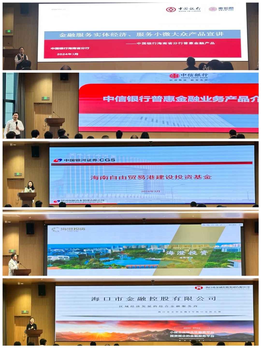 會上,中國銀行、中信銀行、自貿港基金、海澄基金及海口市融資擔保等多家金融機構依次分享了各自目前最新的融資產品及相關申請條件,并圍繞企業實際融資需求,進行了有針對性的講解。