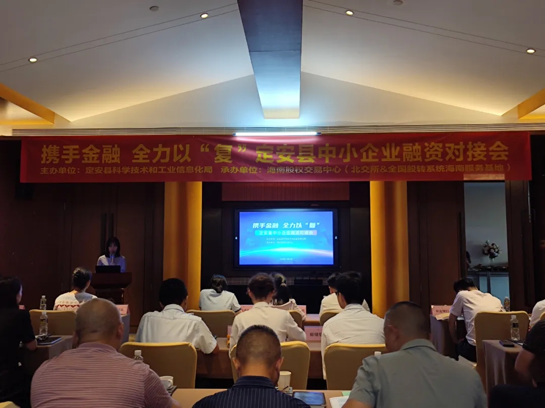 此次活動由定安縣科工信局主辦、海南股權交易中心承辦。定安縣科工信局、定安縣農(nóng)業(yè)農(nóng)村局、定安縣旅文局、定安縣工商業(yè)聯(lián)合會、金融機構相關負責人及企業(yè)代表近50人參加會議。