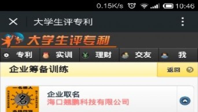 | 企業(yè)說(shuō)明: | 海口翹鵬科技有限公司專(zhuān)注于大學(xué)生評(píng)專(zhuān)利創(chuàng)新創(chuàng)業(yè)訓(xùn)練平臺(tái)的研發(fā)和推廣,所屬領(lǐng)域:互聯(lián)網(wǎng)+大學(xué)生+專(zhuān)利點(diǎn)評(píng)+創(chuàng)新創(chuàng)業(yè)訓(xùn)練+金融,大學(xué)生評(píng)專(zhuān)利目的是為了解決我國(guó)專(zhuān)利推廣難和大學(xué)生創(chuàng)業(yè)就業(yè)難兩大痛點(diǎn),它用發(fā)明專(zhuān)利來(lái)給大學(xué)生進(jìn)行創(chuàng)新創(chuàng)業(yè)訓(xùn)練,用大學(xué)生評(píng)專(zhuān)利的形式間接幫助發(fā)明人宣傳和推廣專(zhuān)利,幫助投資人篩選優(yōu)質(zhì)的專(zhuān)利投資項(xiàng)目,平臺(tái)提供了一種跨界的服務(wù),處在互聯(lián)網(wǎng)、教育、科技、創(chuàng)業(yè)、專(zhuān)利、融資的交匯點(diǎn)上,它讓大學(xué)生成為主角,成為溝通企業(yè)、發(fā)明人和投資人的橋梁,普通的大學(xué)生可以旁觀其他人創(chuàng)新、創(chuàng)業(yè),在參與和體驗(yàn)真實(shí)的創(chuàng)新,創(chuàng)業(yè)過(guò)程中,獲得與專(zhuān)業(yè)相關(guān)的實(shí)踐經(jīng)驗(yàn),學(xué)習(xí)到發(fā)明專(zhuān)利和創(chuàng)新創(chuàng)業(yè)基本知識(shí),為日后走上創(chuàng)業(yè)之路奠定基礎(chǔ)。 大學(xué)生評(píng)專(zhuān)利平臺(tái)開(kāi)創(chuàng)了一個(gè)全新的商業(yè)模式,通過(guò)獨(dú)特的形式盤(pán)活專(zhuān)利市場(chǎng),能夠提升大學(xué)生就業(yè)能力和創(chuàng)新創(chuàng)業(yè)能力,它順應(yīng)了“大眾創(chuàng)業(yè),萬(wàn)眾創(chuàng)新”的潮流,是國(guó)家政策所鼓勵(lì)的,如果這種模式得以在全國(guó)推廣,它就會(huì)成為解決我國(guó)專(zhuān)利推廣難和大學(xué)生創(chuàng)業(yè)就業(yè)難等問(wèn)題的最佳方案,進(jìn)而整合多方資源,推動(dòng)“中國(guó)制造”向“中國(guó)創(chuàng)造”蛻變,帶來(lái)巨大的經(jīng)濟(jì)效益和社會(huì)效益。 公司宗旨:為發(fā)明人圓夢(mèng),為大學(xué)生創(chuàng)業(yè)圓夢(mèng)!讓中國(guó)的專(zhuān)利不再難推廣!
