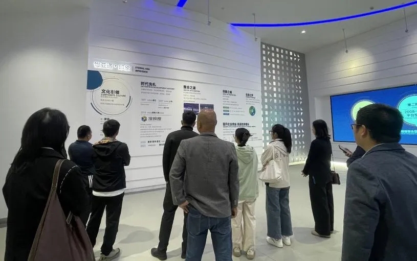 隨后,企業代表一行來到深圳市怡亞通供應鏈股份有限公司總部參觀交流。怡亞通是中國首家上市供應鏈公司,聚焦十大核心產業,打造供應鏈綜合服務平臺。在講解員的仔細介紹與智能化投屏展示中,企業代表參觀了怡亞通數字化展廳,詳細了解了深圳市怡亞通的歷史發展歷程及怡亞通在供應鏈管理、數字化服務及全域營銷等領域的創新成就。座談會上,雙方圍繞商品分銷渠道、品牌營銷孵化、品牌數智化營銷和門店數字化等方面進行了探討。