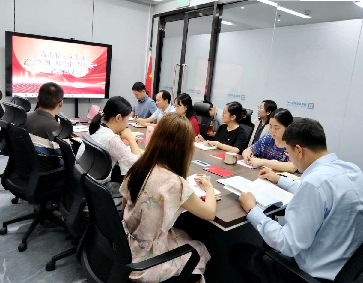 為深入貫徹落實習近平總書記關于全面從嚴治黨的重要指示精神,強化黨員干部紀律規矩意識,落實“清廉股交”建設,近日,海南股交黨支部組織開展“學案例 明紀律 強警示”主題黨日活動。活動由黨支部書記、董事長朱磊主持,黨員、預備黨員、發展對象、入黨積極分子及中層管理人員參加。