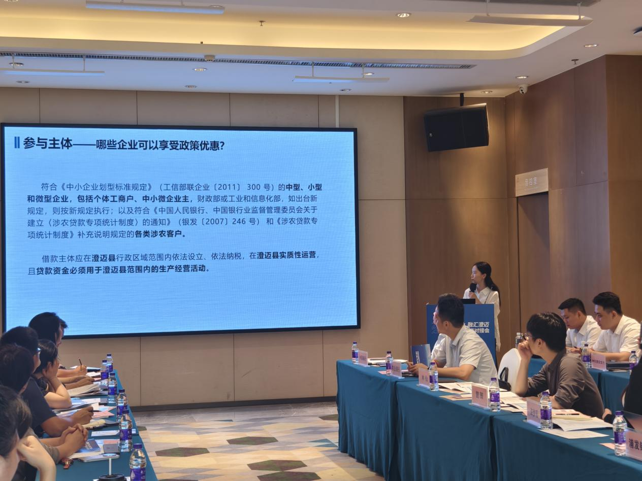 對接會設置政策解讀、產品推介、互動交流三大環節,系統推進融資服務精準化、實效化。在政策解讀環節,澄邁縣政府辦金融工作室負責人圍繞政策背景、參與主體、政策優惠及貼息流程等方面重點解讀《澄邁縣企業貸款貼息資金管理辦法》,幫助企業全面了解貸款貼息政策,鼓勵企業用好用足政策紅利。海南省登記結算就“智金平臺”的功能模塊、操作流程及服務優勢進行了講解。據悉,澄邁縣企業通過智金平臺申請貸款,不僅可享受縣級財政專項貼息支持,有效降低融資成本,還可申請使用海南省企業應急續貸資金池,獲得低成本過橋資金支持,切實緩解短期周轉壓力。